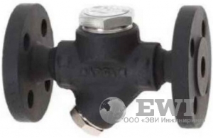Корпус конденсатоотводчика изготовлен из чугуна P250GH/1.0460, уплотнение — из металлизированного графита, остальные детали конструкции — из нержавеющей стали. Присоединение — резьбовое внутреннее по ISO7/1 Rp (BS21), фланцевое по EN 1092-1:2007, ANSI. Максимальное рабочее давление — 42 бар, максимальная рабочая температура — +300 ° C. Пропускная способность достигает 2720 кг/ч. Допускается установка конденсатоотводчика в любом положении, предпочтительным является монтаж на горизонтальном трубопроводе.