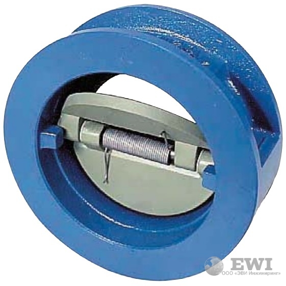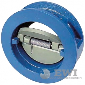 Корпус клапана изготовлен из ковкого чугуна GGG40 или литого чугуна GG25, диск — из нержавеющей стали AISI 316, латуни или ковкого чугуна GGG40, седло изготавливается из EPDM, NBR или FPM, вал — из нержавеющей стали AISI 304, пружина — из нержавеющей стали AISI 302. Присоединение — межфланцевое по PN10/16/25 и ANSI150. Диапазон рабочих температур — -40–+232 °C (в зависимости от материала седла).