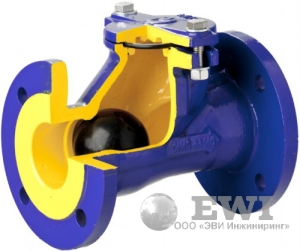 Корпус и крышка клапана изготовлены из серого чугуна, шар — из алюминия, покрытого NBR. Присоединение — фланцевое по DIN PN16. Клапан характеризуется небольшими размерами и высокой степенью прилегания. Клапан применяется в системах канализации и водоснабжения, пожаротушения, в промышленных технологических процессах.