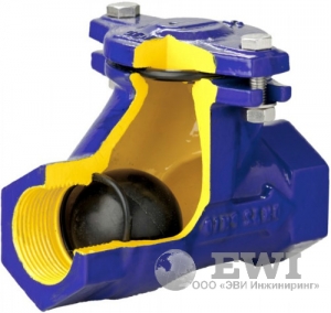 Корпус и крышка клапана изготовлены из серого чугуна, шар — из алюминия, покрытого NBR. Присоединение — резьбовое по DIN 2999. Клапан характеризуется небольшими размерами и высокой степенью прилегания. Клапан применяется в системах канализации и водоснабжения, пожаротушения, в промышленных технологических процессах.
