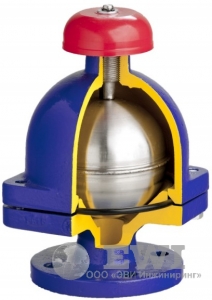 Корпус и крышка клапана изготовлены из серого чугуна, поплавок и рукоятка — из нержавеющей стали. Присоединение — фланцевое. Максимальная рабочая температура — +100 °С.